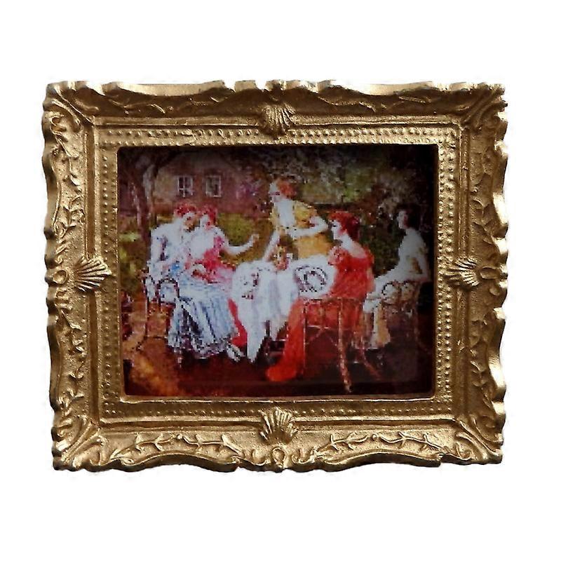 Dolls House Miniature Framed Victorian Sewing Party Painting