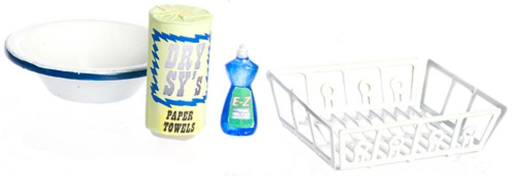 Dolls House Miniature Kitchen Accessory Washing Up Set Bowl Liquid Dish Drainer