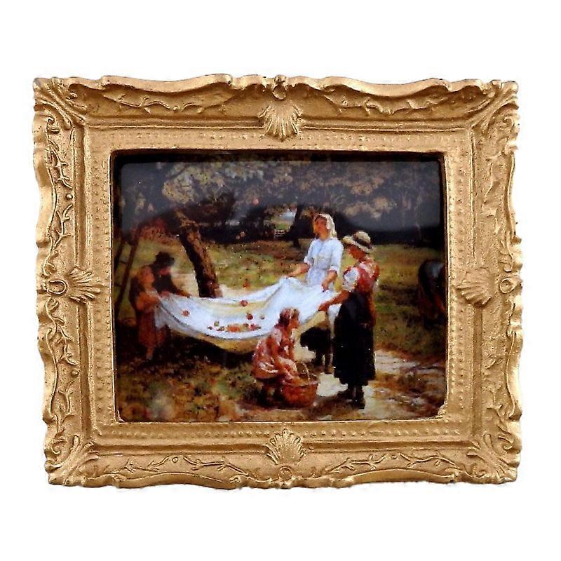 Dolls House Miniature Picking Apples Picture Painting Gold Frame