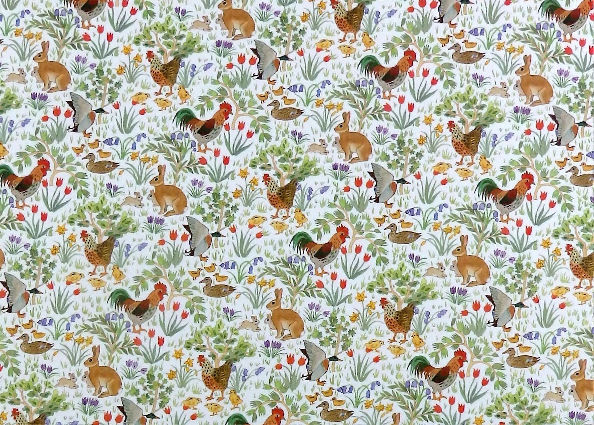 Dolls House Miniature Print Country Springtime On White Wallpaper