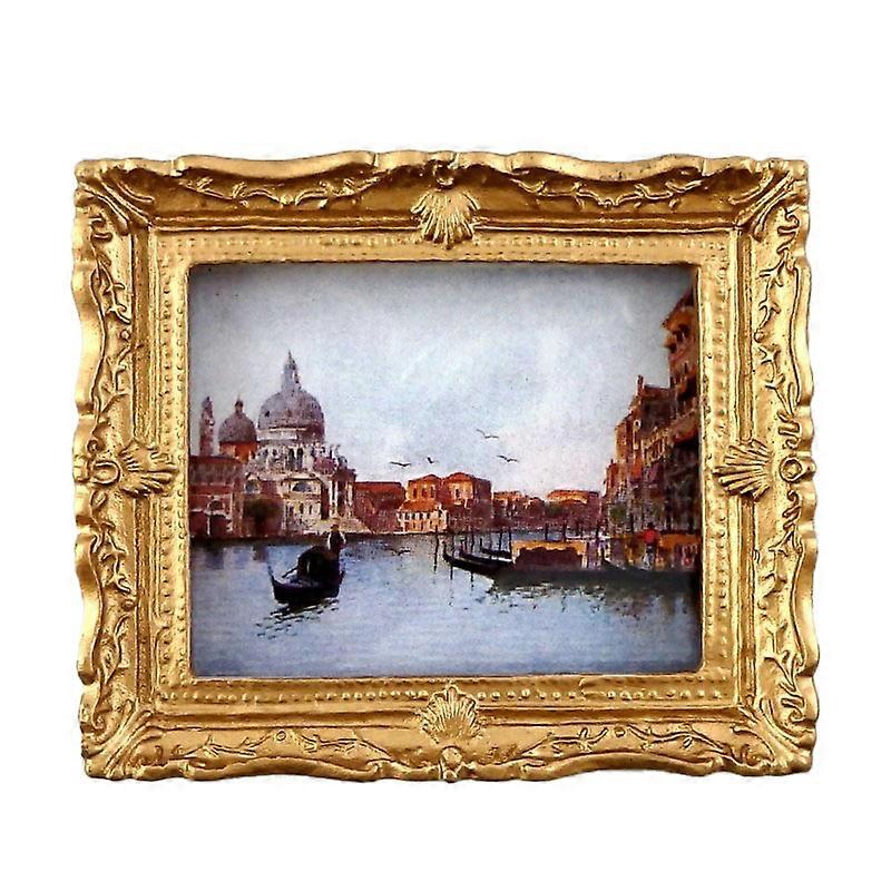 Dolls House Miniature Venice Canal Scene Picture Painting Gold Frame
