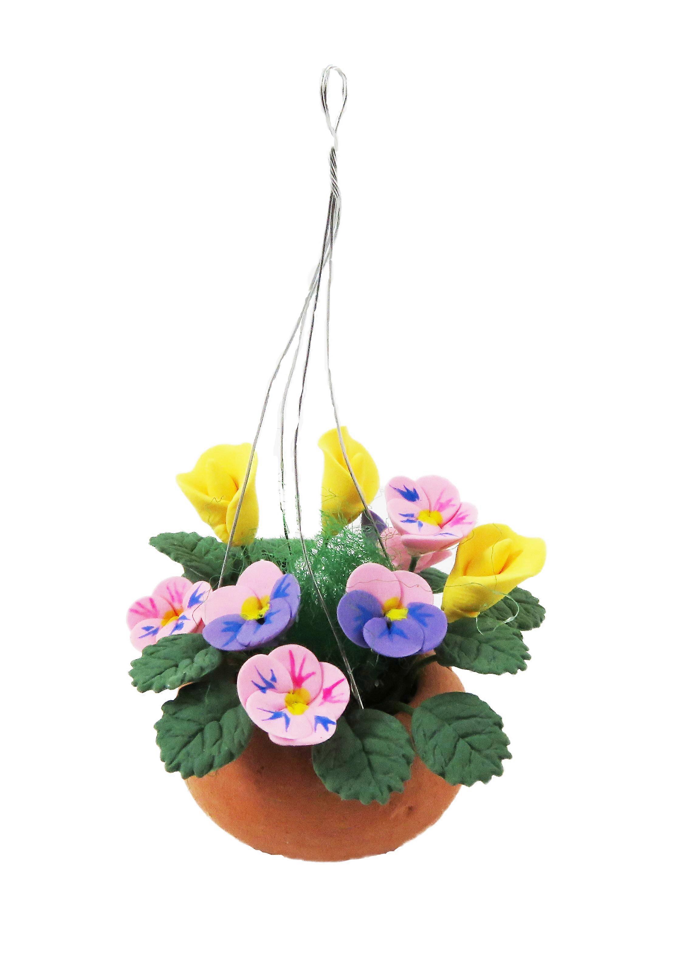 Dolls House Mixed Flowers In Terracotta Hanging Basket Bowl Garden Accessory