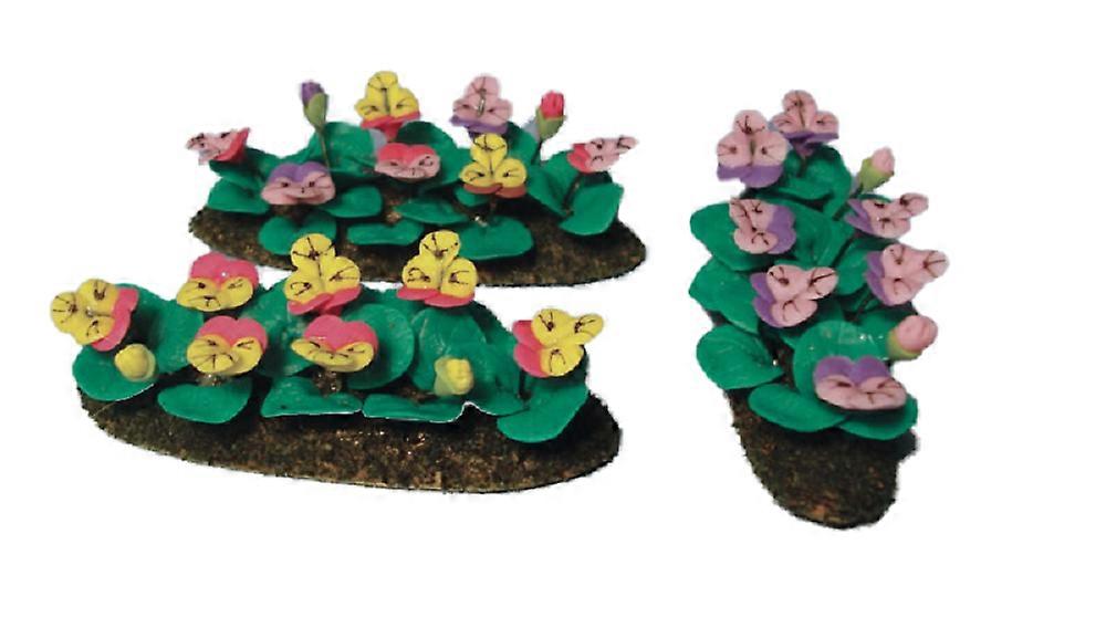 Dolls House Mixed Pansies Flowers In Ground Grass Miniature Garden Accessory