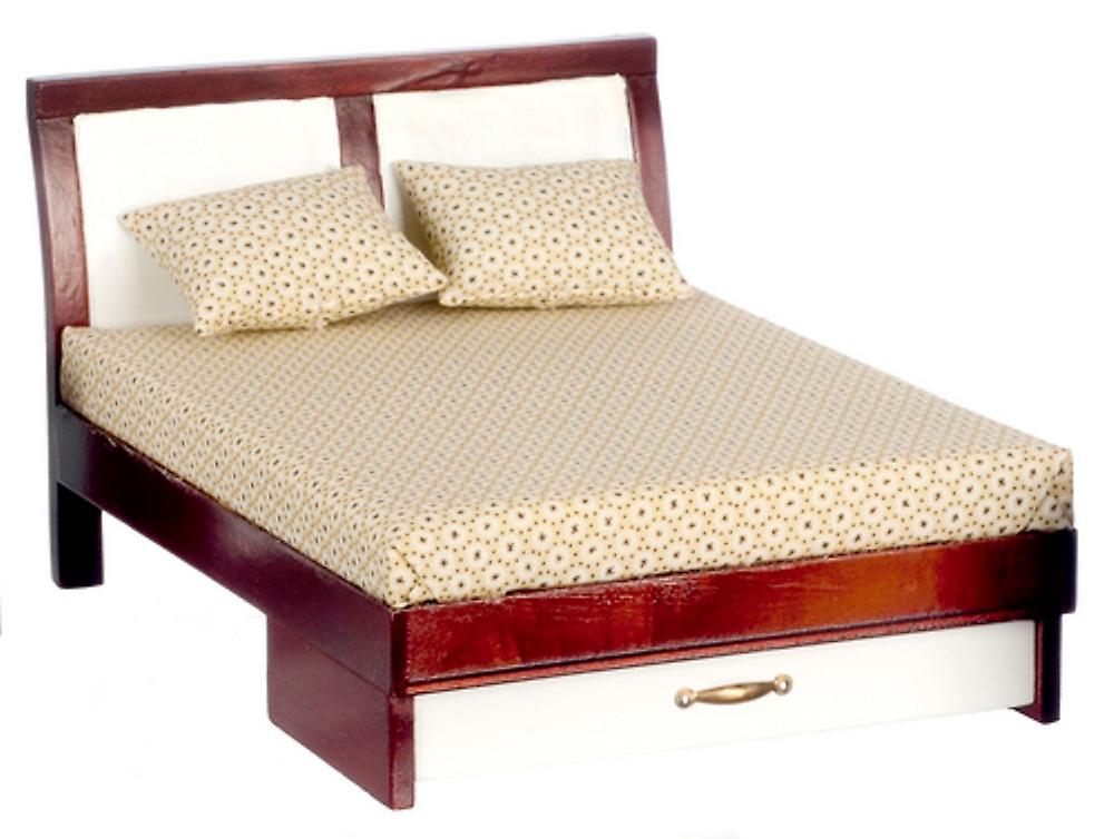 Dolls House Modern Double Bed Mahogany White Miniature 1:12 Bedroom Furniture