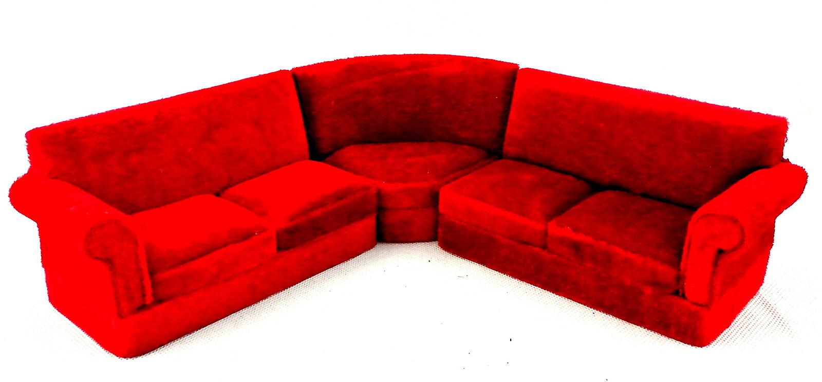 Dolls House Modern Red Velvet Corner Sofa Miniature Living Room Furniture
