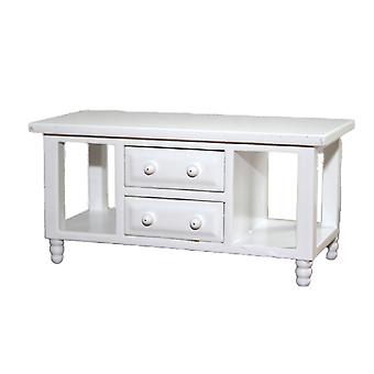 Dolls House Modern White Coffee Table With Drawers Miniature 1:12 Furniture