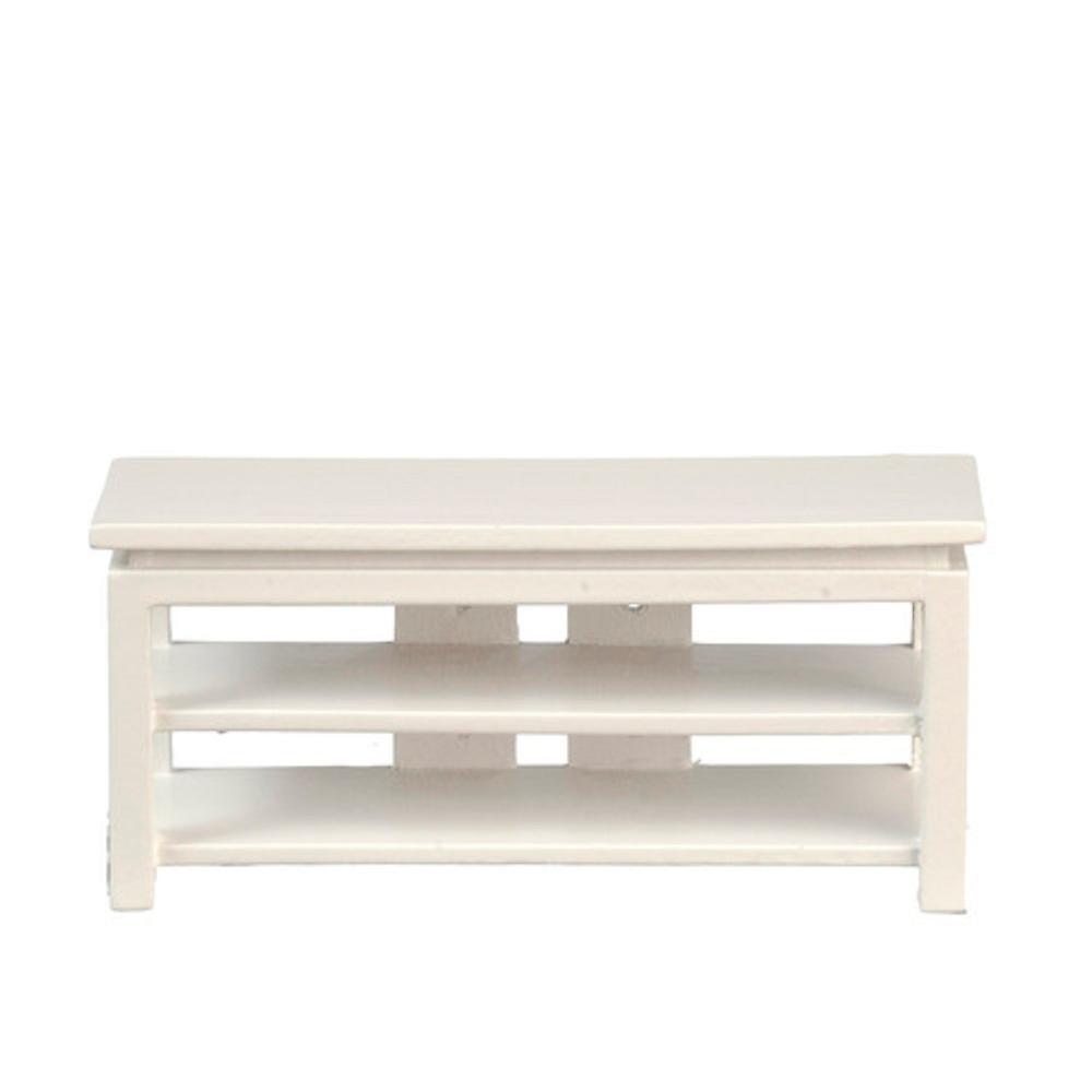 Dolls House Modern White Low Tv Cabinet Stand Miniature Living Room Furniture