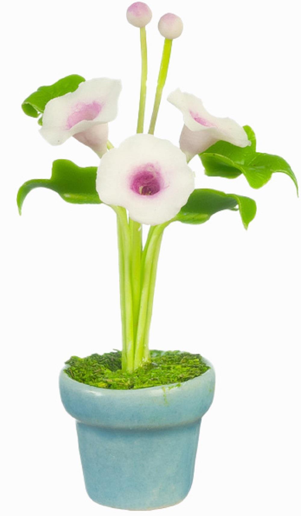 Dolls House Morning Glory Artificial Flower In Blue Plant Pot Ornament Accessory