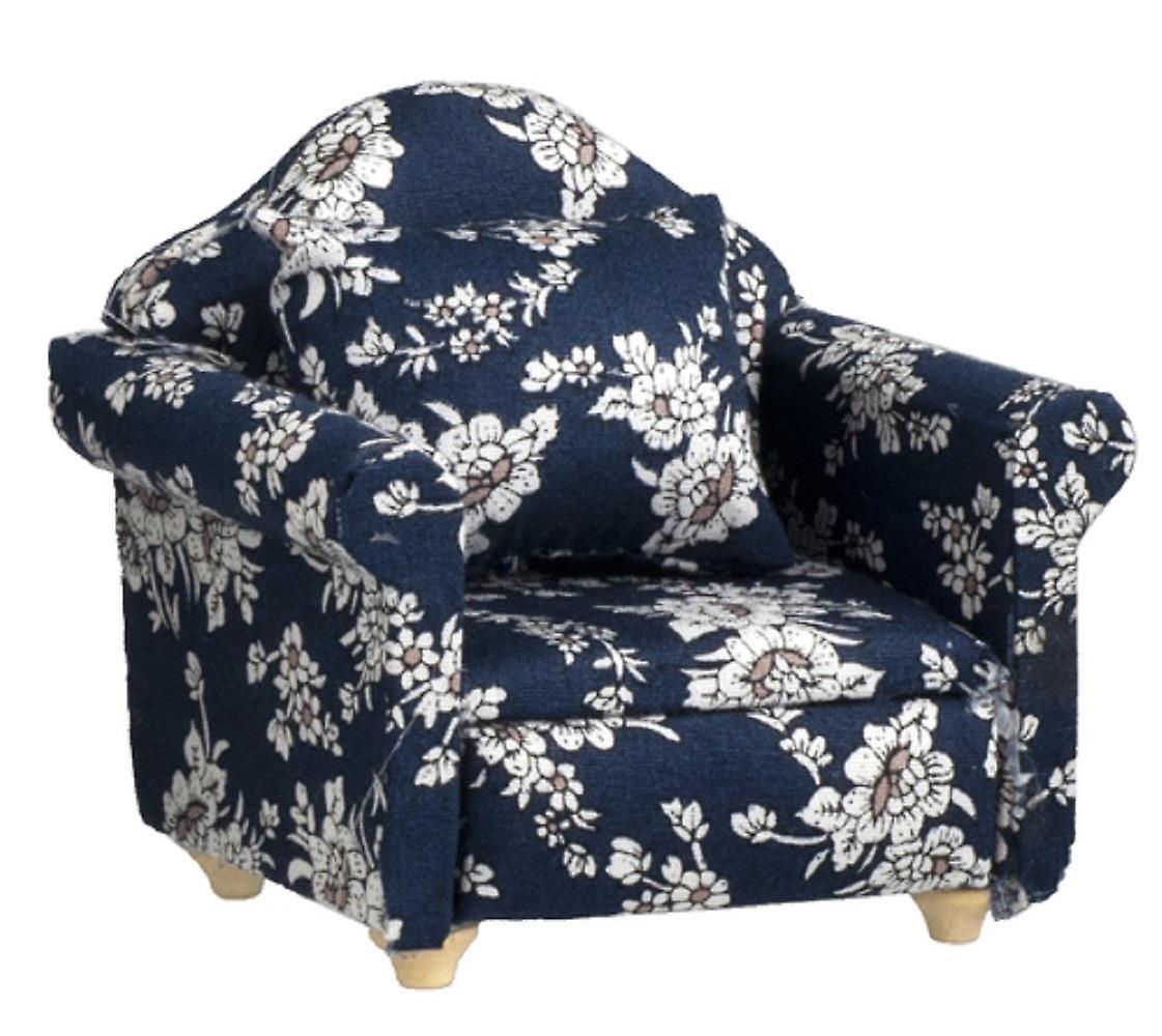 Dolls House Navy Blue & White Floral Club Armchair Modern Living Room Furniture