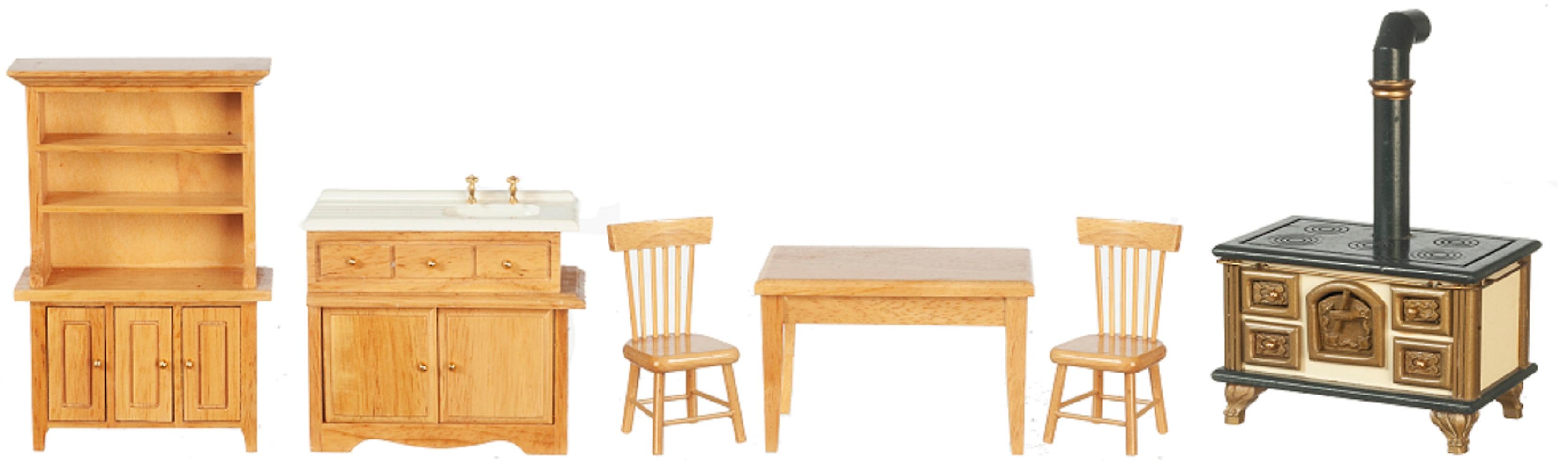 Dolls House Oak Kitchen Dining Room Furniture 6 Piece Set Miniature 1:12 Scale
