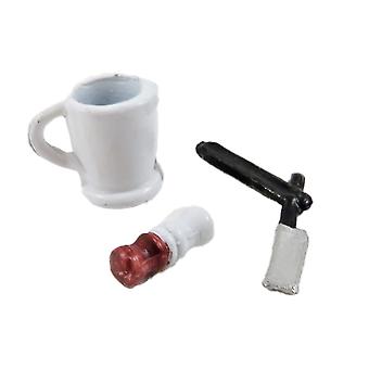 Dolls House Old Fashioned Shaving Set Mug Brush & Razor Bathroom Accessory