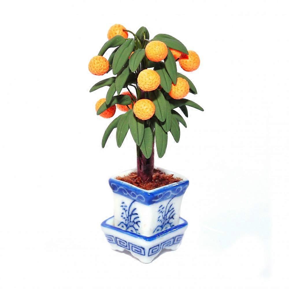 Dolls House Orange Tree In White And Blue Chinese Pot Planter Garden Accessory