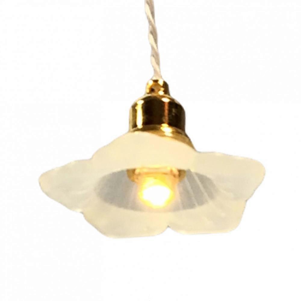 Dolls House Pendant Ceiling Lamp White Daisy Shade Led Battery Light 1:12 Scale