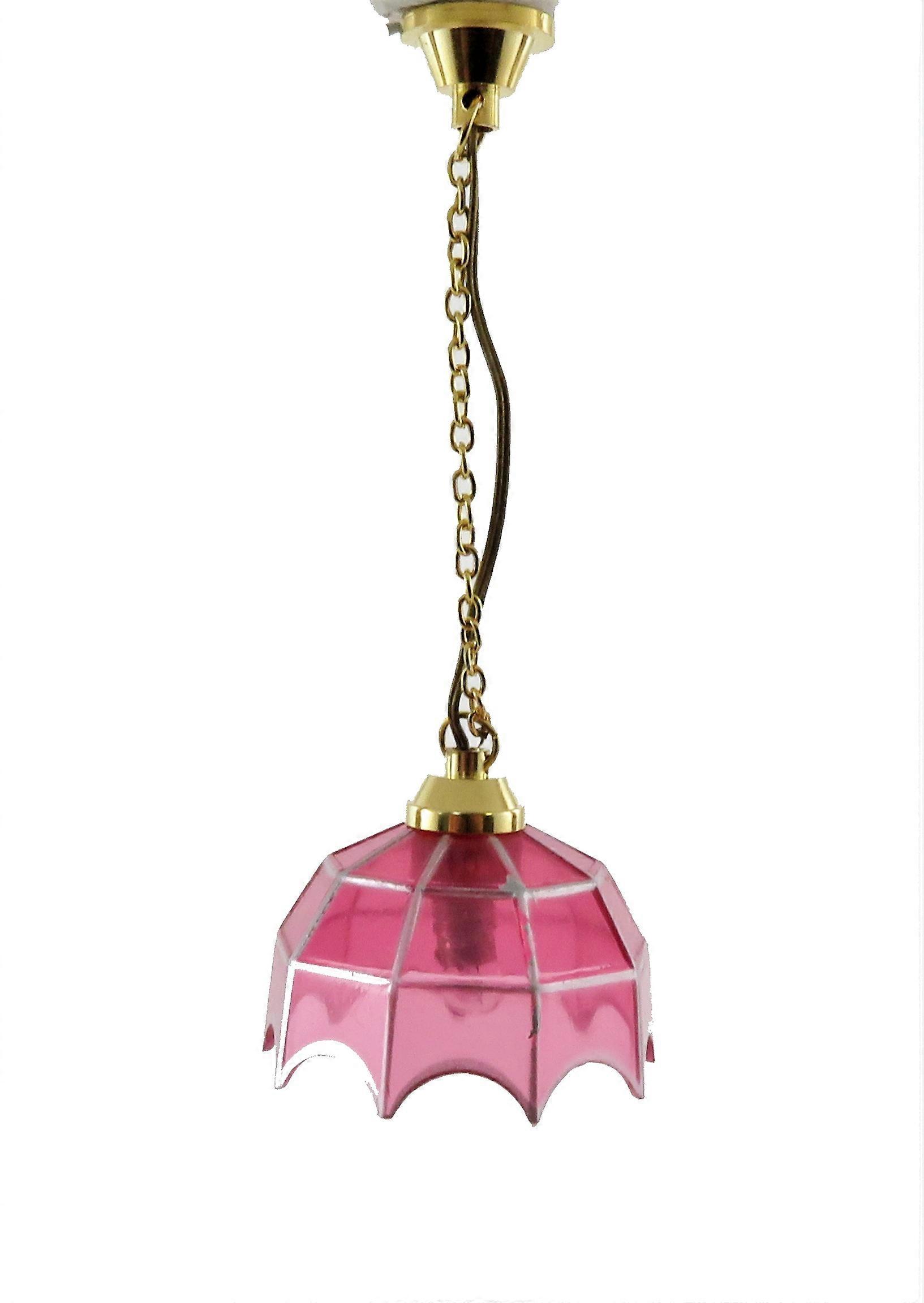 Dolls House Pendant Light With Pink Silver Shade 12v Miniature Electric Lighting