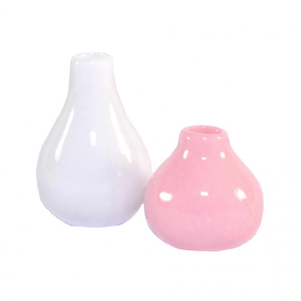 Dolls House Pink And White Modern Vases Miniature Flower Ornament Accessory