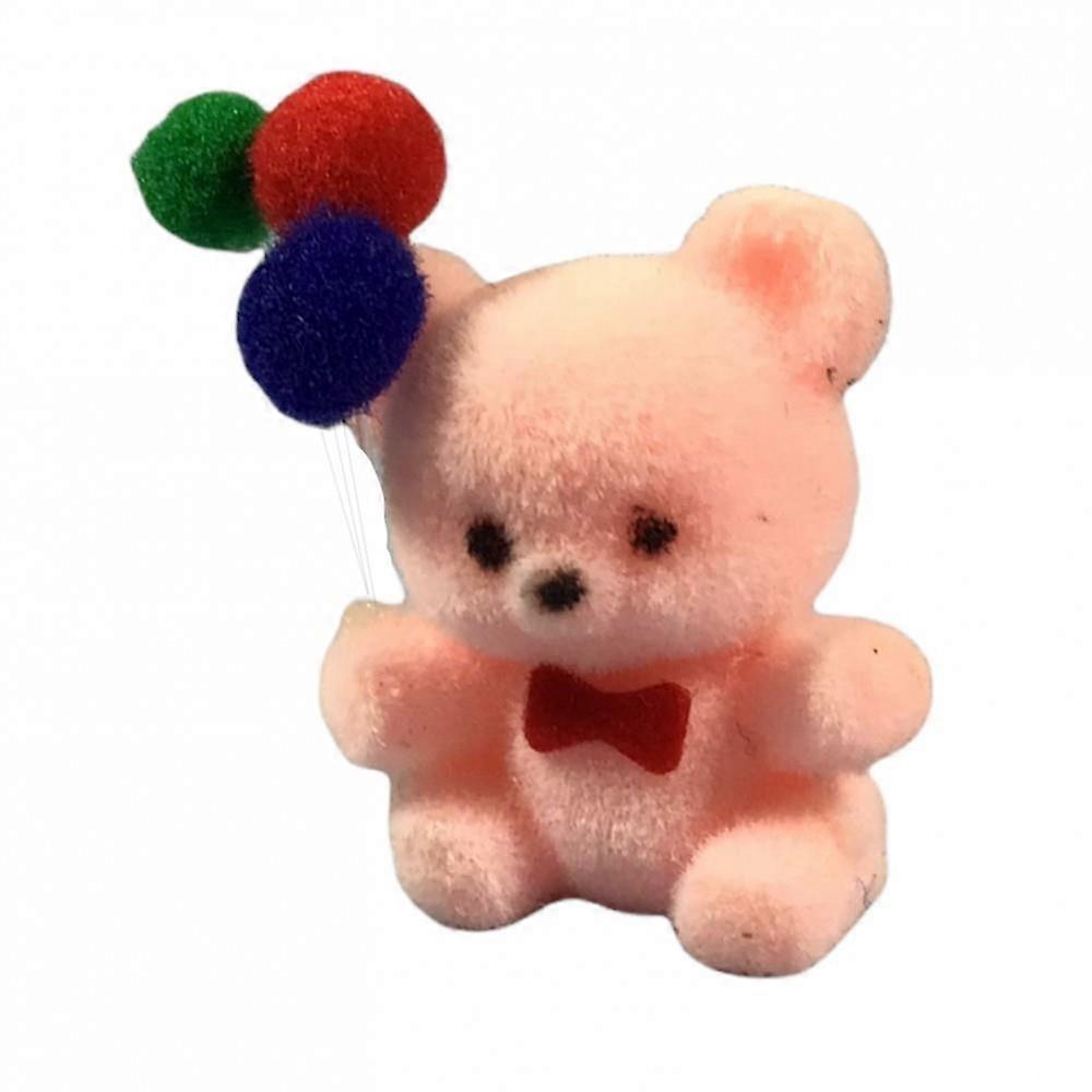 Dolls House Pink Flock Teddy Bear With Balloons 1:12 Toy Shop Nursery Accessory