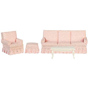 Dolls House Pink Floral Country Cottage Miniature Living Room Furniture Set 1:12