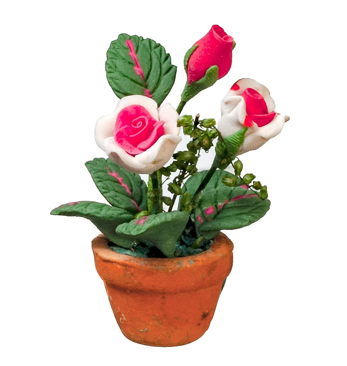Dolls House Pink Roses In A Terracotta Pot Miniature Garden Accessory 1:12 Scale