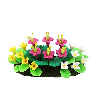 Dolls House Pink White Yellow Mixed Flowers In Ground Miniature Garden Accessory