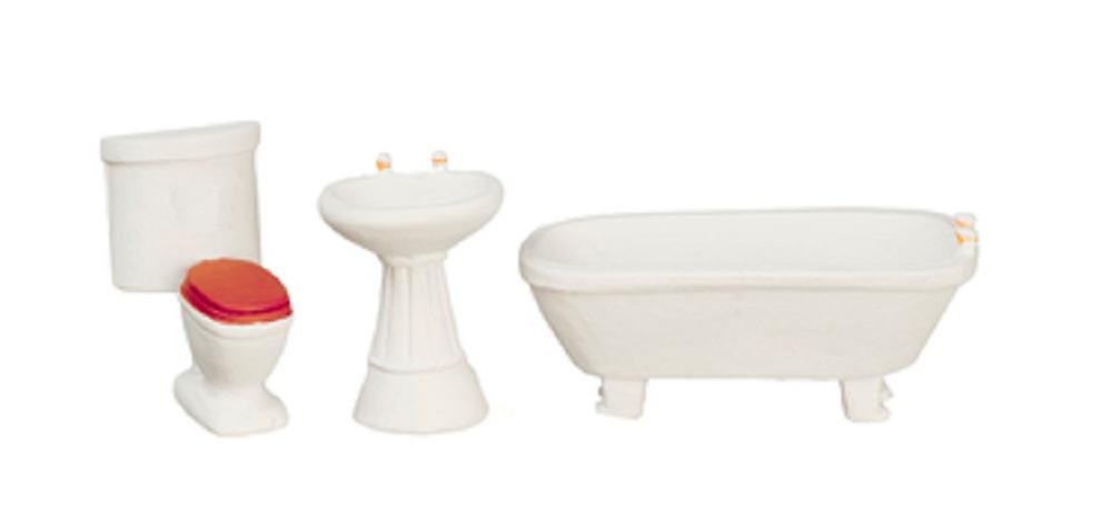 Dolls House Plain White Bathroom Suite Furniture Set 1:24 Half Inch