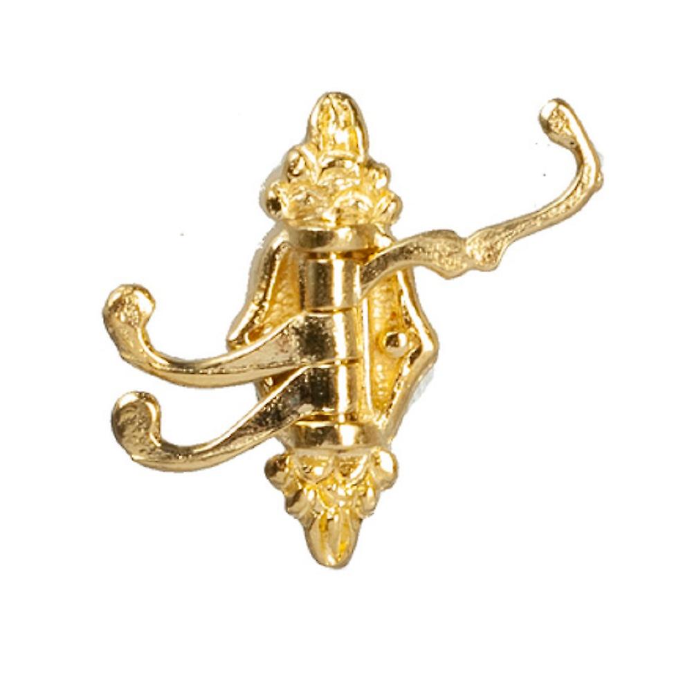Dolls House Polished Brass Triple Coat Hook Miniature Hall Cloakroom Accessory