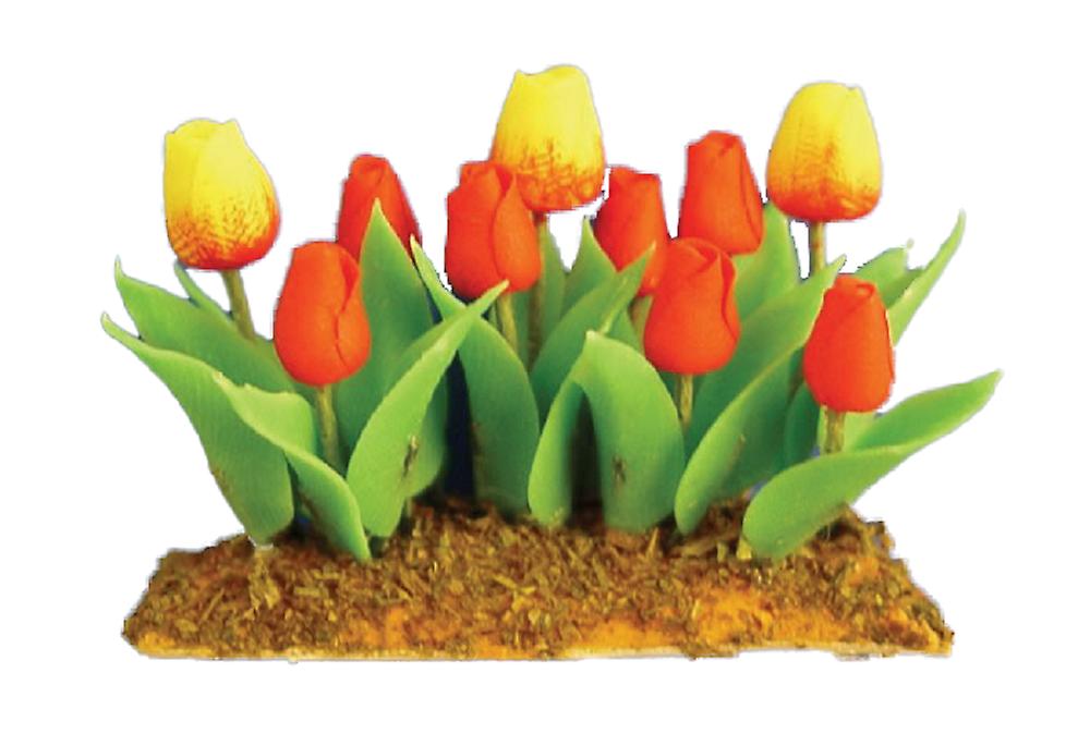 Dolls House Red And Yellow Tulips Flowers In Grass Ground Garden Accessory 1:12