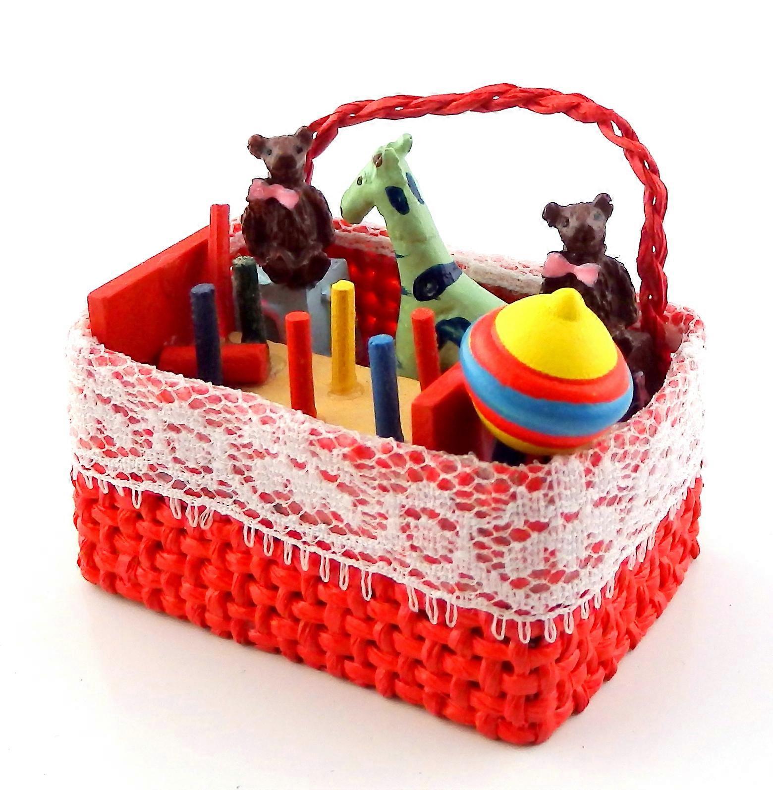 Dolls House Red Basket Full Of Toys Miniature Nursery Kids Bedroom Accessory