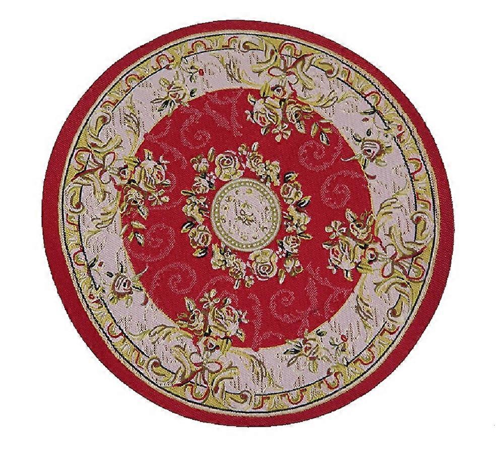 Dolls House Red Beige Circular Rug Miniature Round Turkish Woven Carpet
