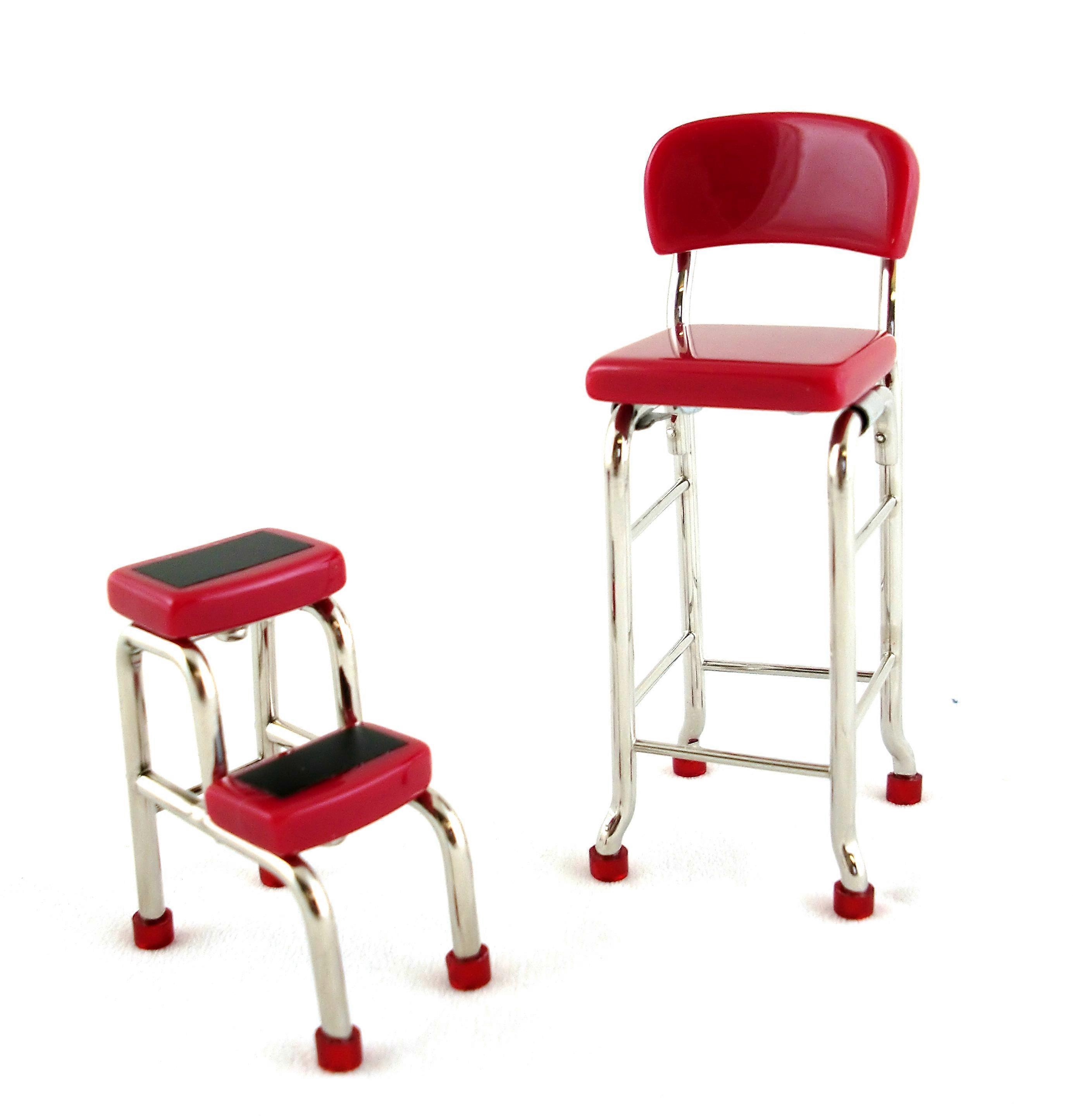 Dolls House Red Chrome Tall Chair Step Stool Miniature Kitchen Shop Furniture