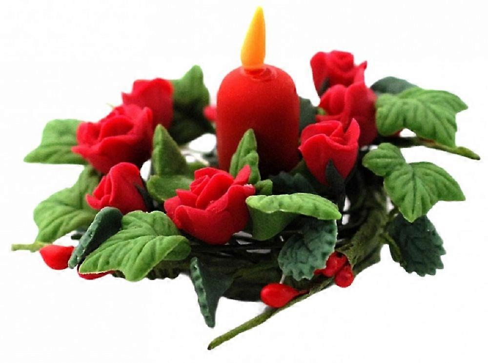 Dolls House Red Roses Table Wreath & Candle Miniature Christmas Dining Accessory