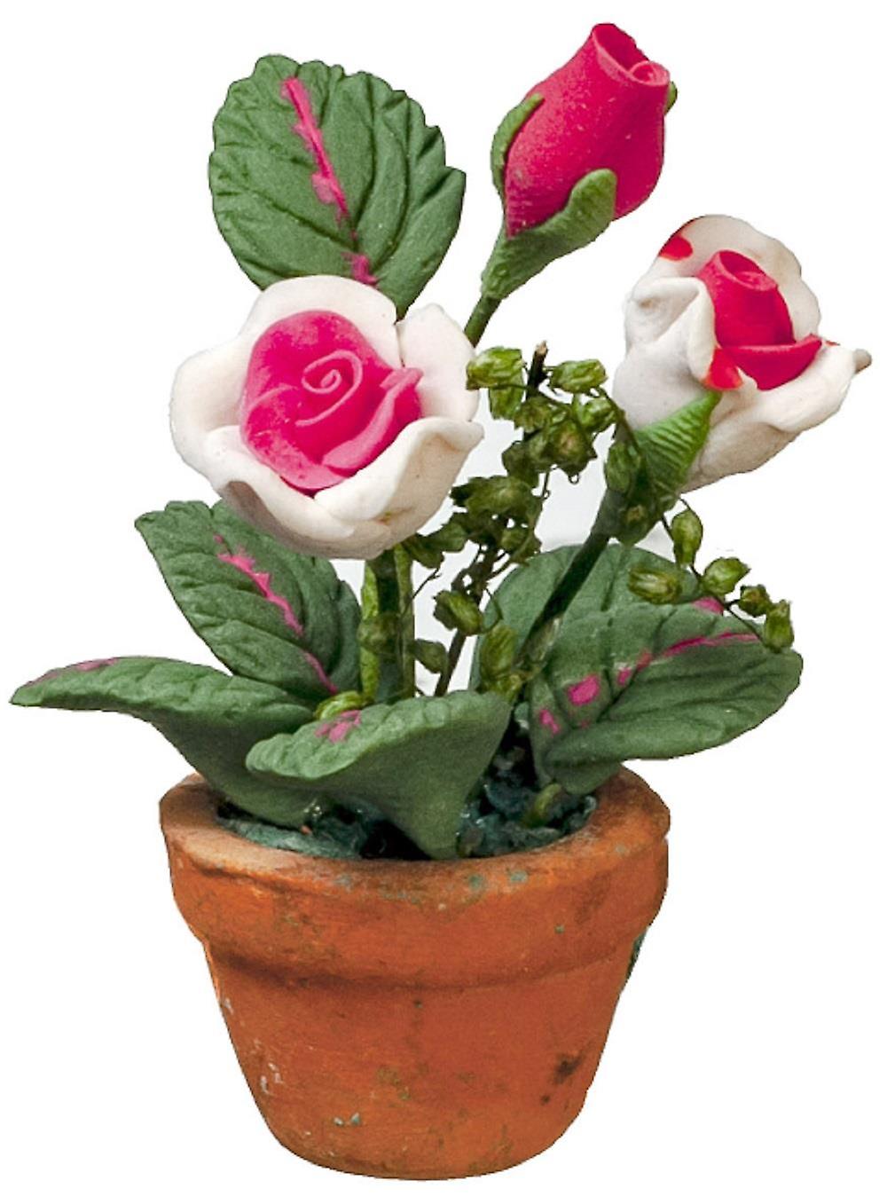 Dolls House Roses In Pot Violet & Pink Miniature Garden Accessory 1:12 Scale