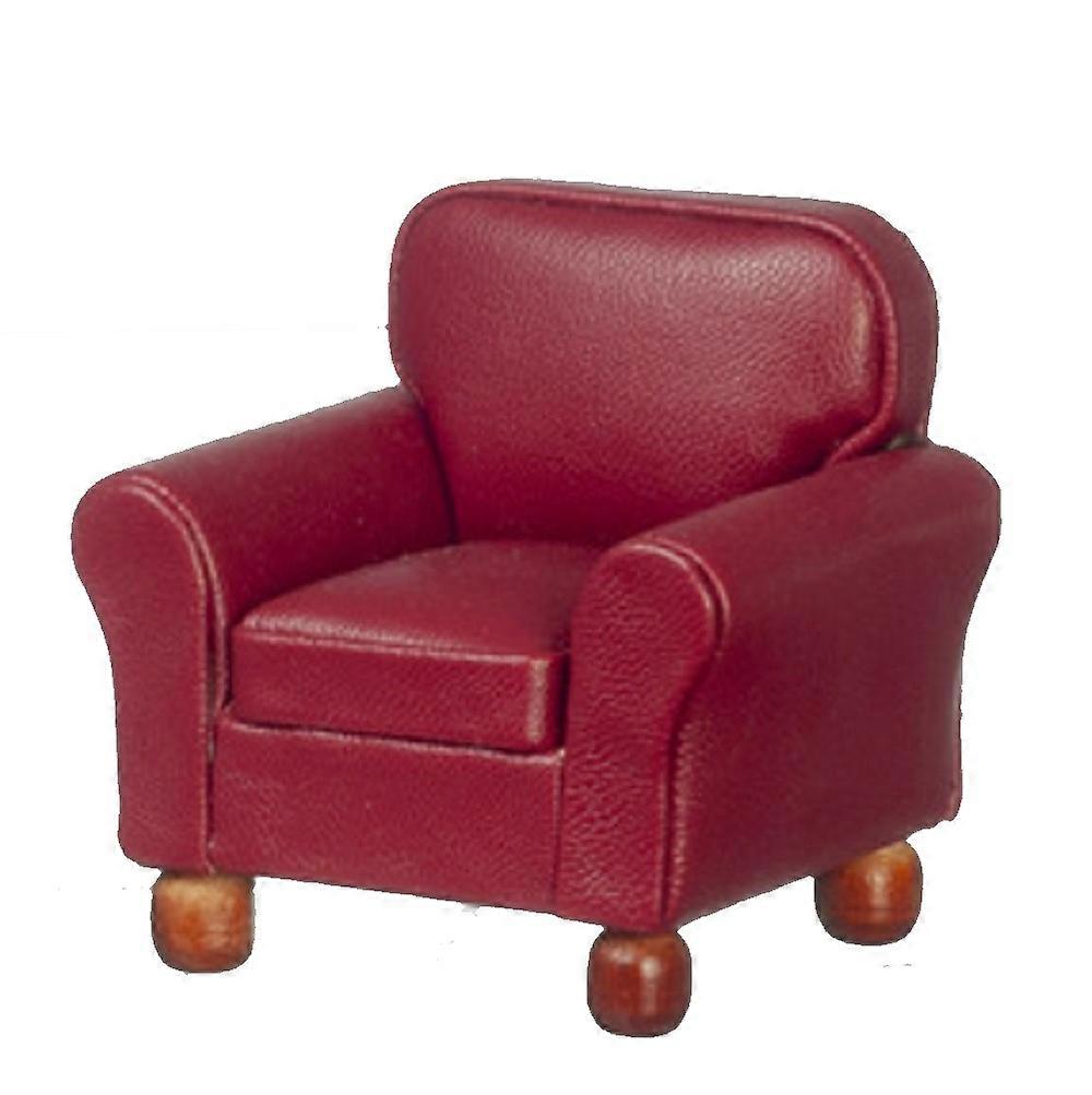 Dolls House Rs Burgundy Leather Armchair Arm Chair Living Room Furniture