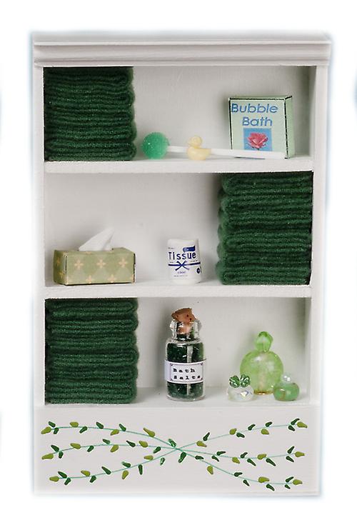 Dolls House Shelf Unit Dark Green Towels & Accessories Miniature Bathroom Furniture