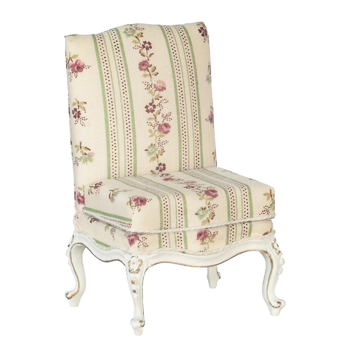 Dolls House Slipper Chair Accent Floral Stripe Jbm Hand Painted White Furniture