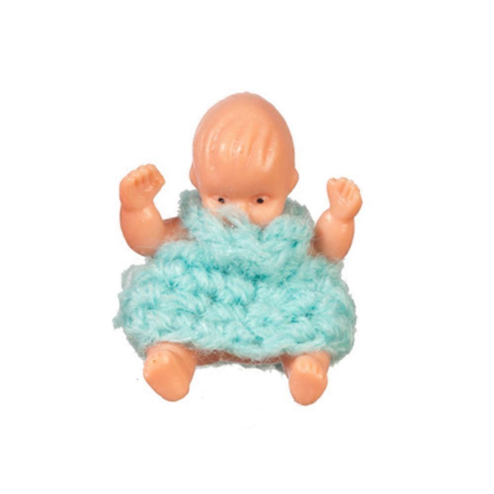 Dolls House Small Baby Doll Sitting In Blue Miniature People Nursery Accessory