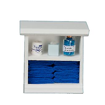 Dolls House Small Shelf Unit With Dark Blue Accessories Bathroom Furniture