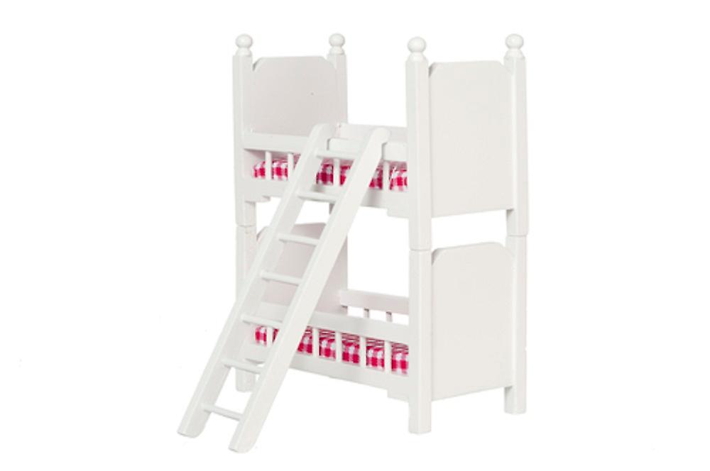Dolls House Small White Wood Bunk Beds Miniature Bedroom Furniture Bunkbeds