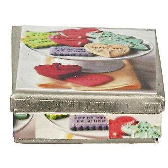 Dolls House Square Biscuit Tin Heart Star Cookie Design Kitchen Store Accessory