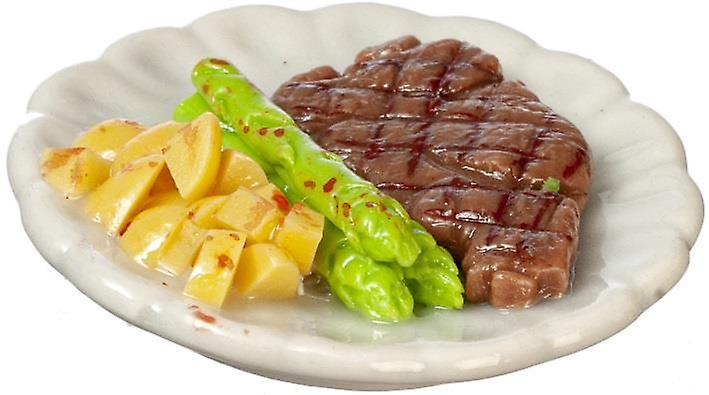 Dolls House Steak, Asparagus & Potatoes On Plate 1:12 Kitchen Food Accessory