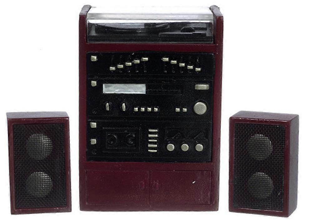 Dolls House Stereo Record Player Stack & Speakers In Cabinet Mahogany Furniture