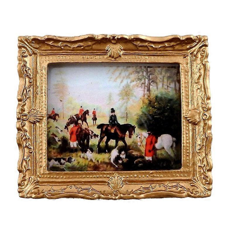 Dolls House The Hunt Scene Painting Gold Frame Miniature Picture Accessory