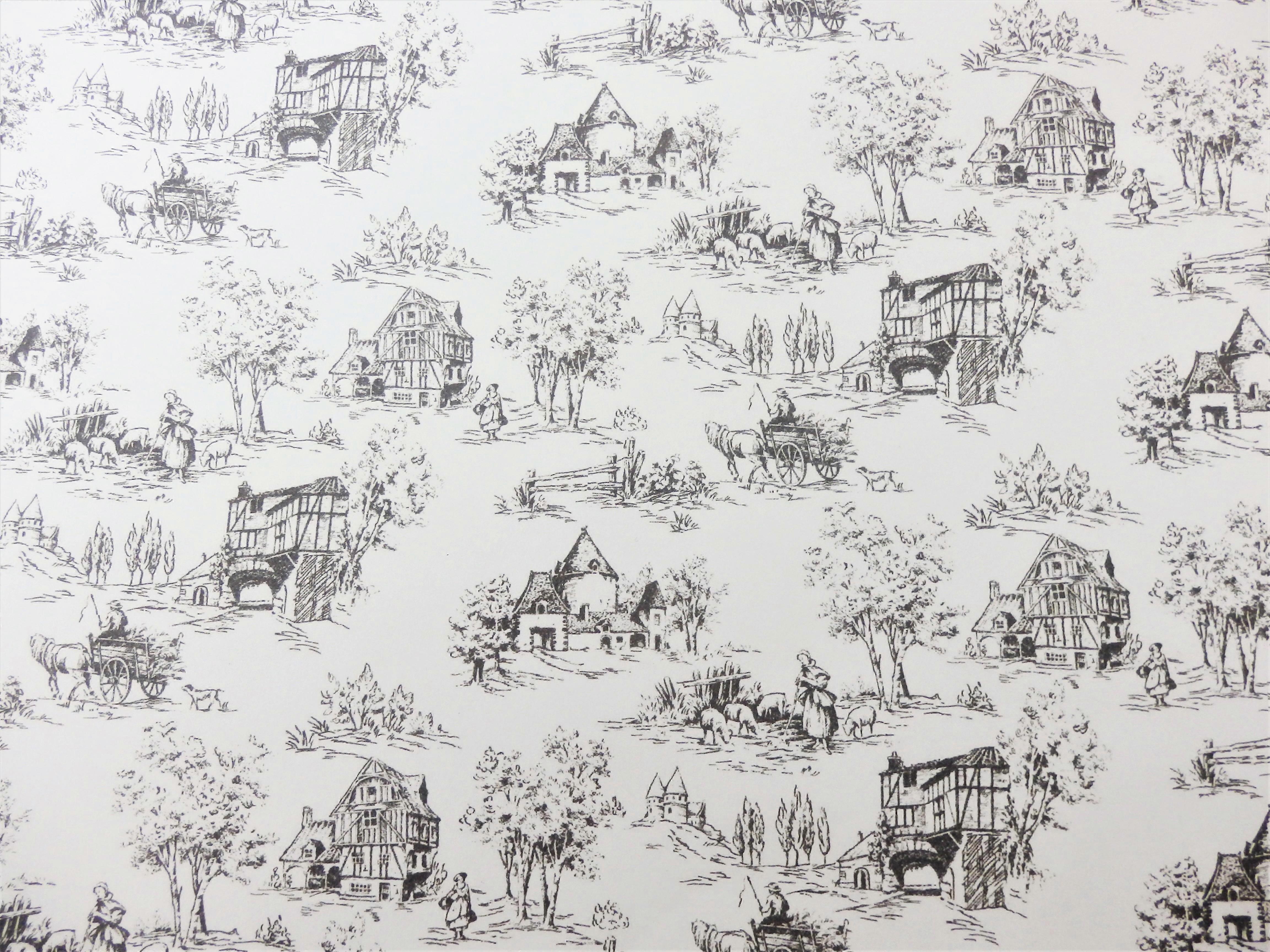 Dolls House Toile De Jouy Black On White Miniature Picture Print Wallpaper 1:12