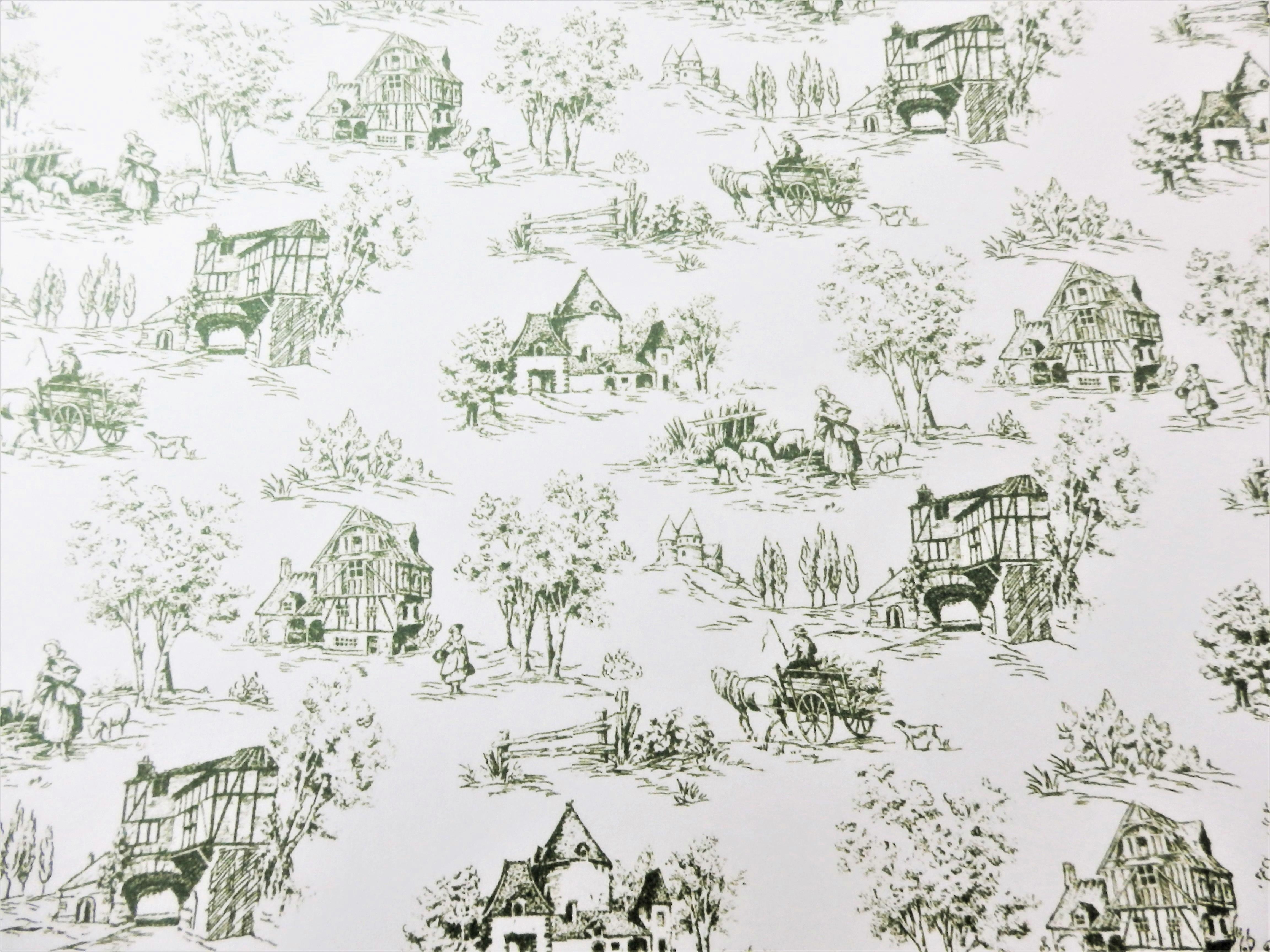 Dolls House Toile De Jouy Green On White Miniature Picture Print Wallpaper 1:12