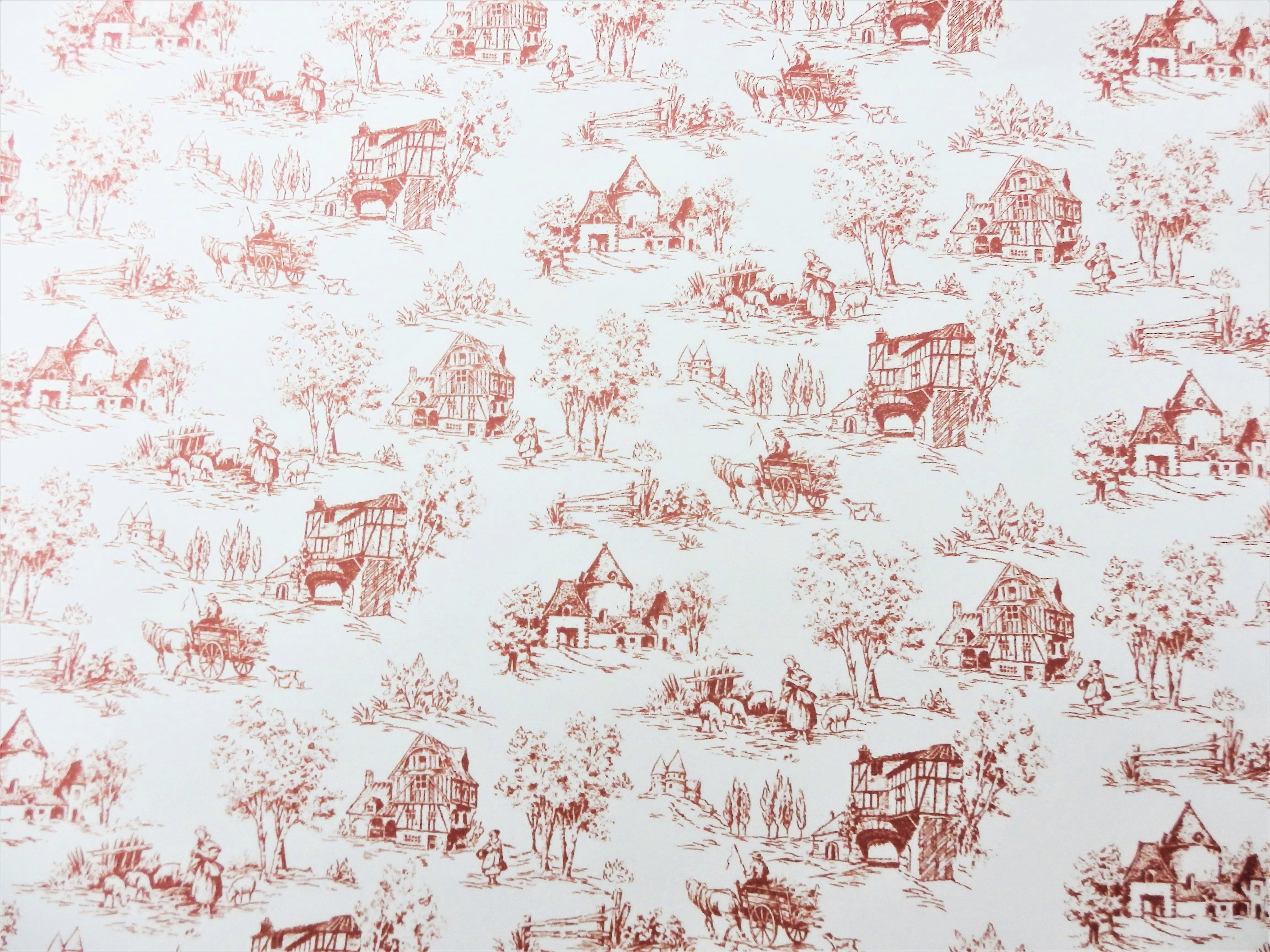 Dolls House Toile De Jouy Red On White Miniature Picture Print Wallpaper 1:12
