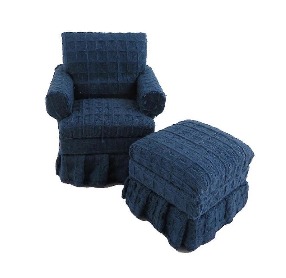 Dolls House Traditional Blue Armchair & Ottoman Miniature Living Room Furniture