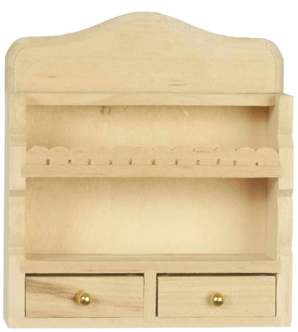 Dolls House Unfinished Wall Shelf Unit & Drawers 1:12 Kitchen Shelves Furniture