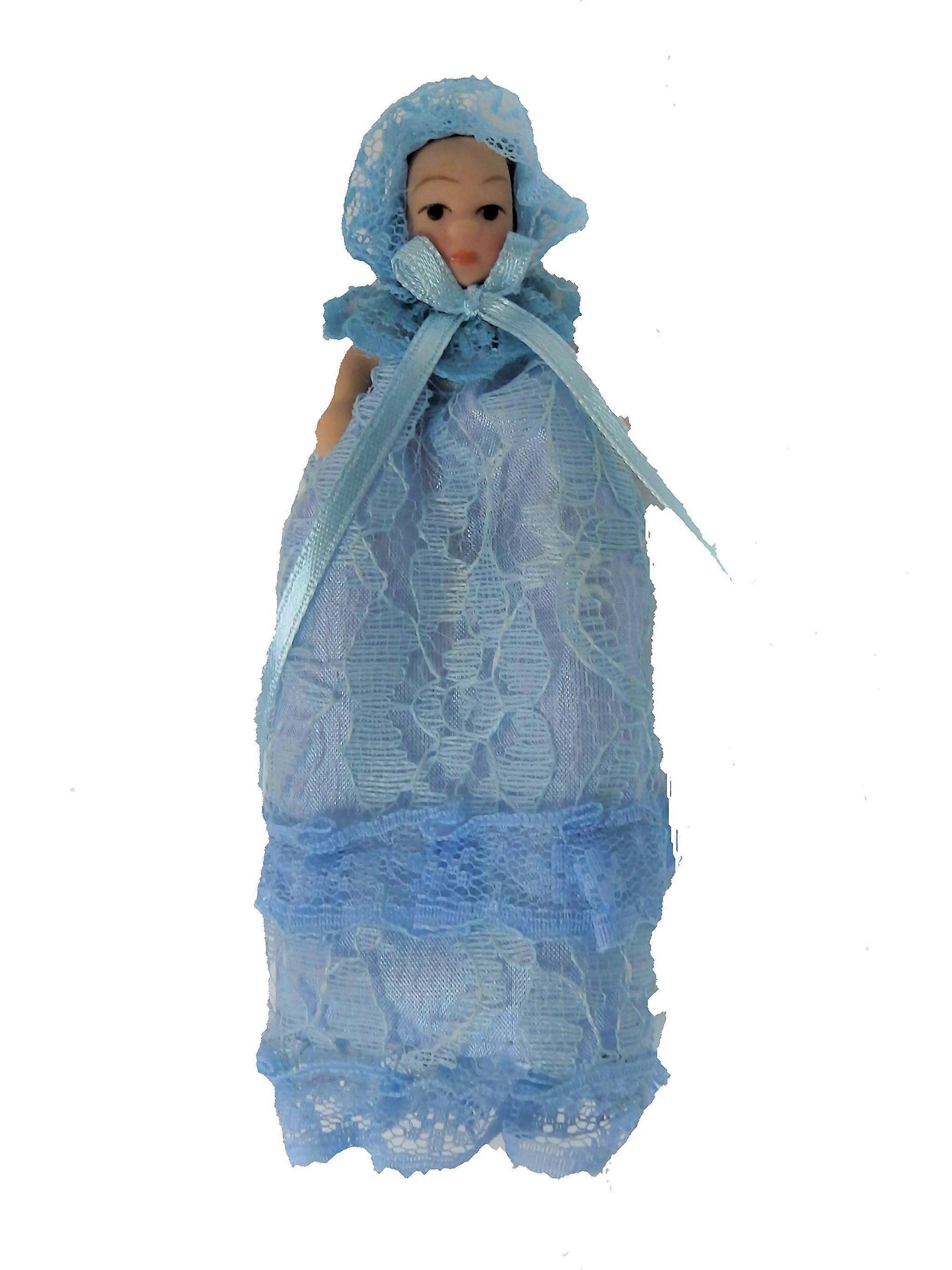 Dolls House Victorian Baby Boy In Blue Christening Gown Miniature