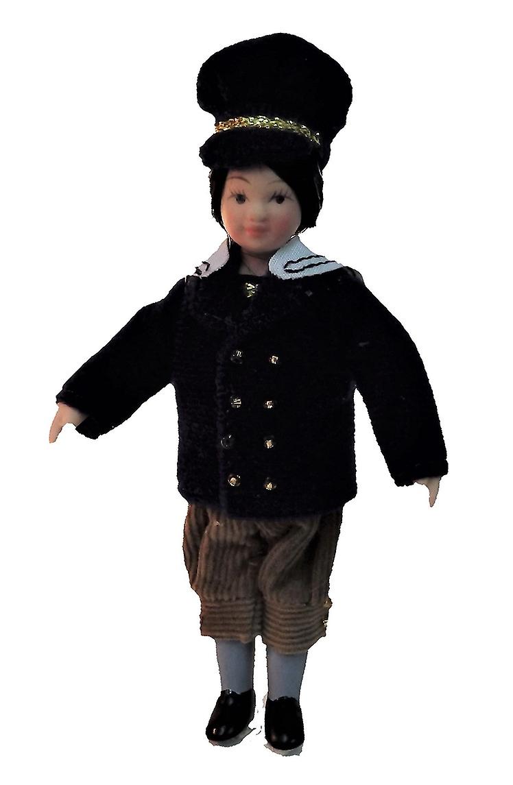 Dolls House Victorian Boy Blue Hat & Coat Miniature Porcelain People