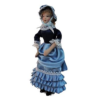 Dolls House Victorian Lady Frilly Dress Miniature Porcelain People
