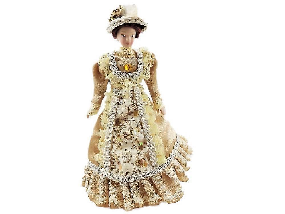 Dolls House Victorian Lady In Coffee Outfit Porcelain 1:12 People